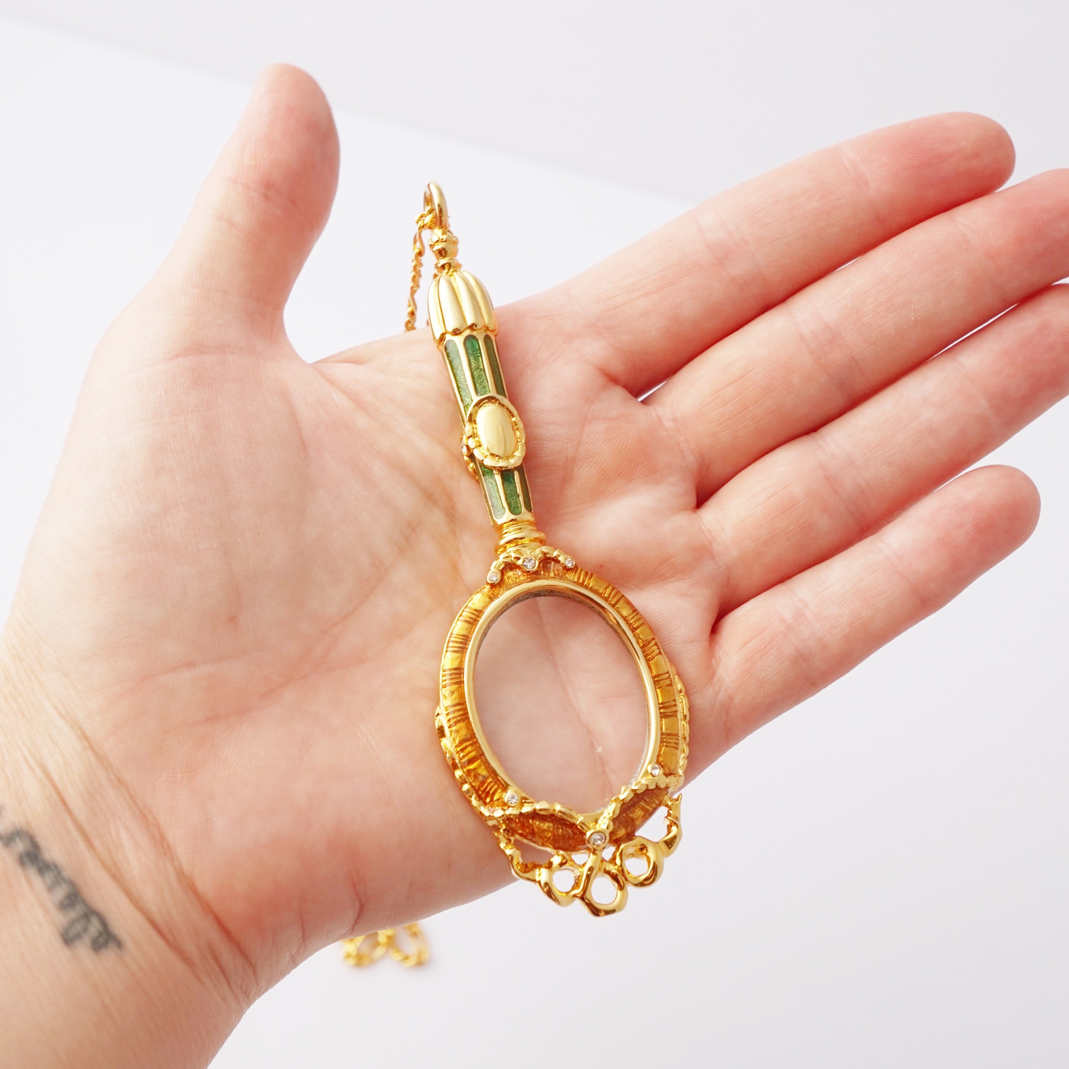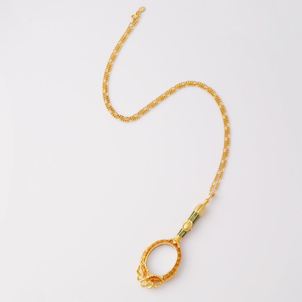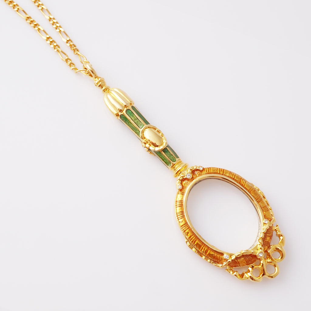 Enameled Lorgnette Magnifying Glass Pendant Necklace By Joan Rivers, 1990s