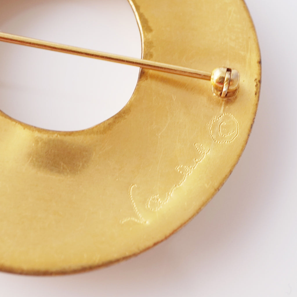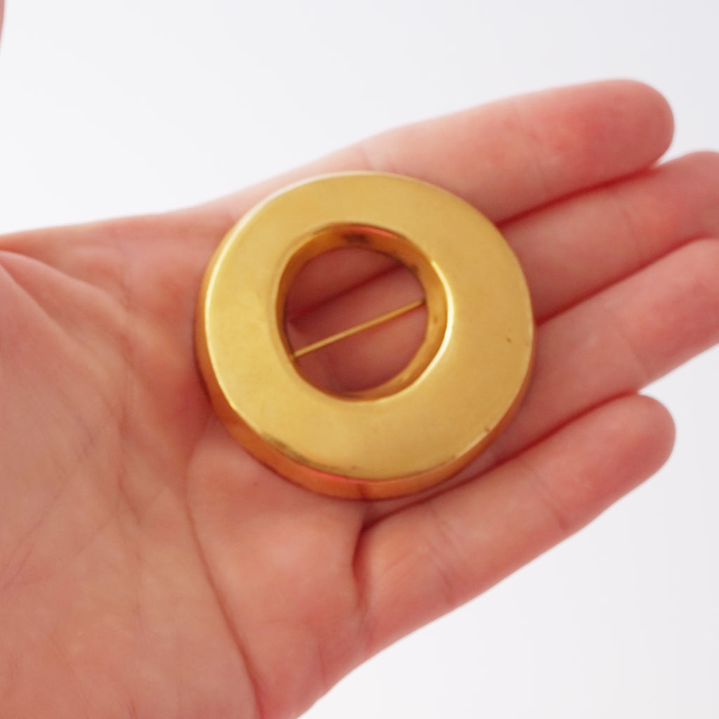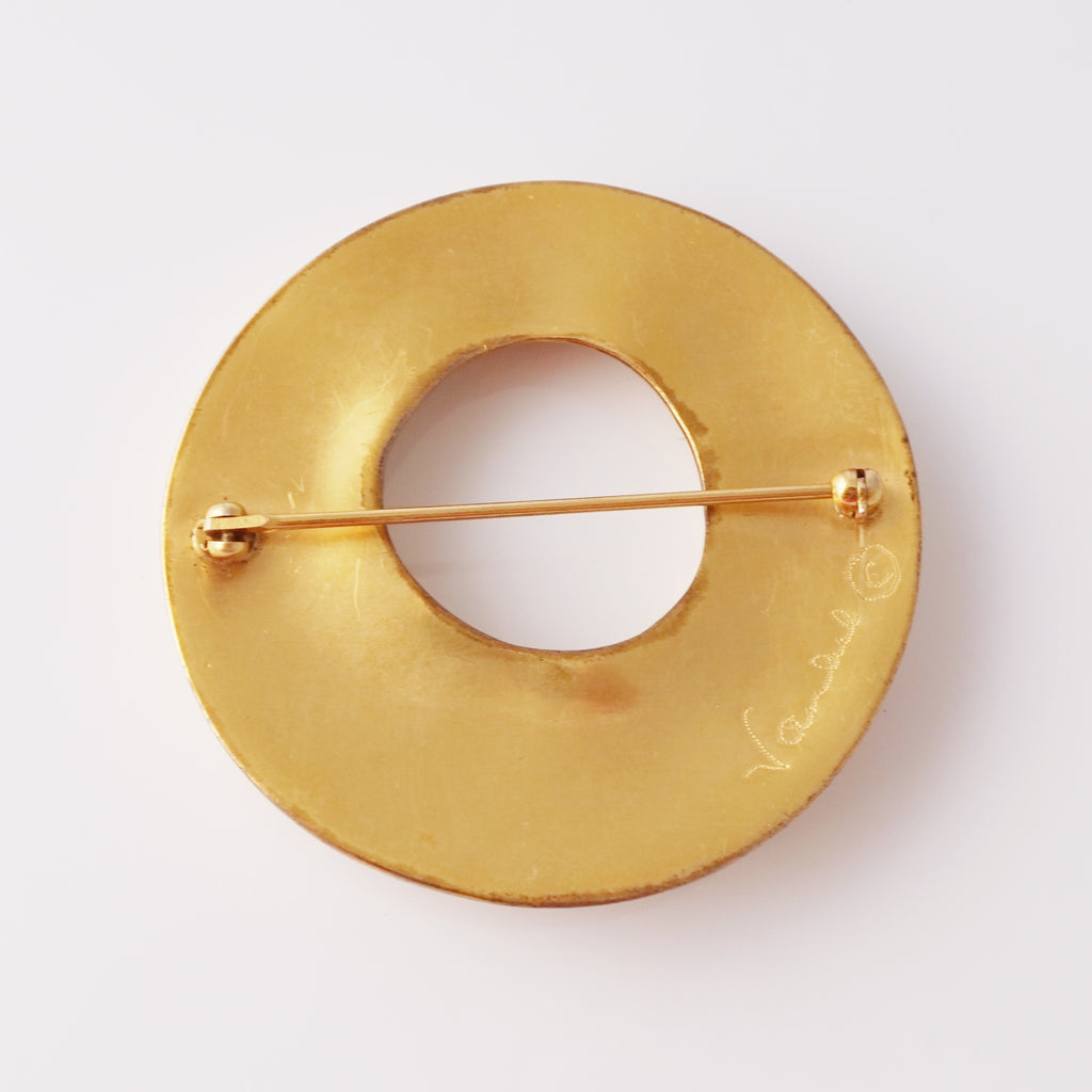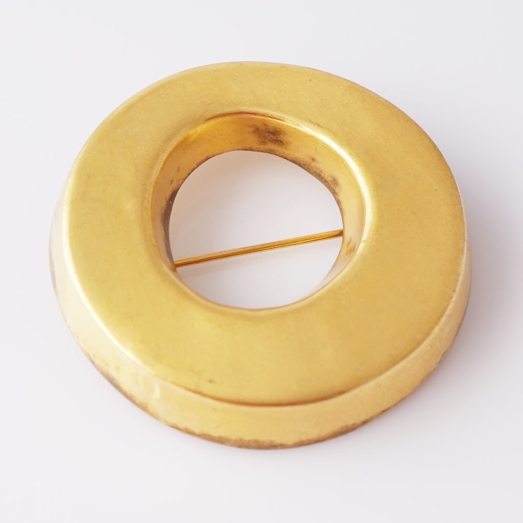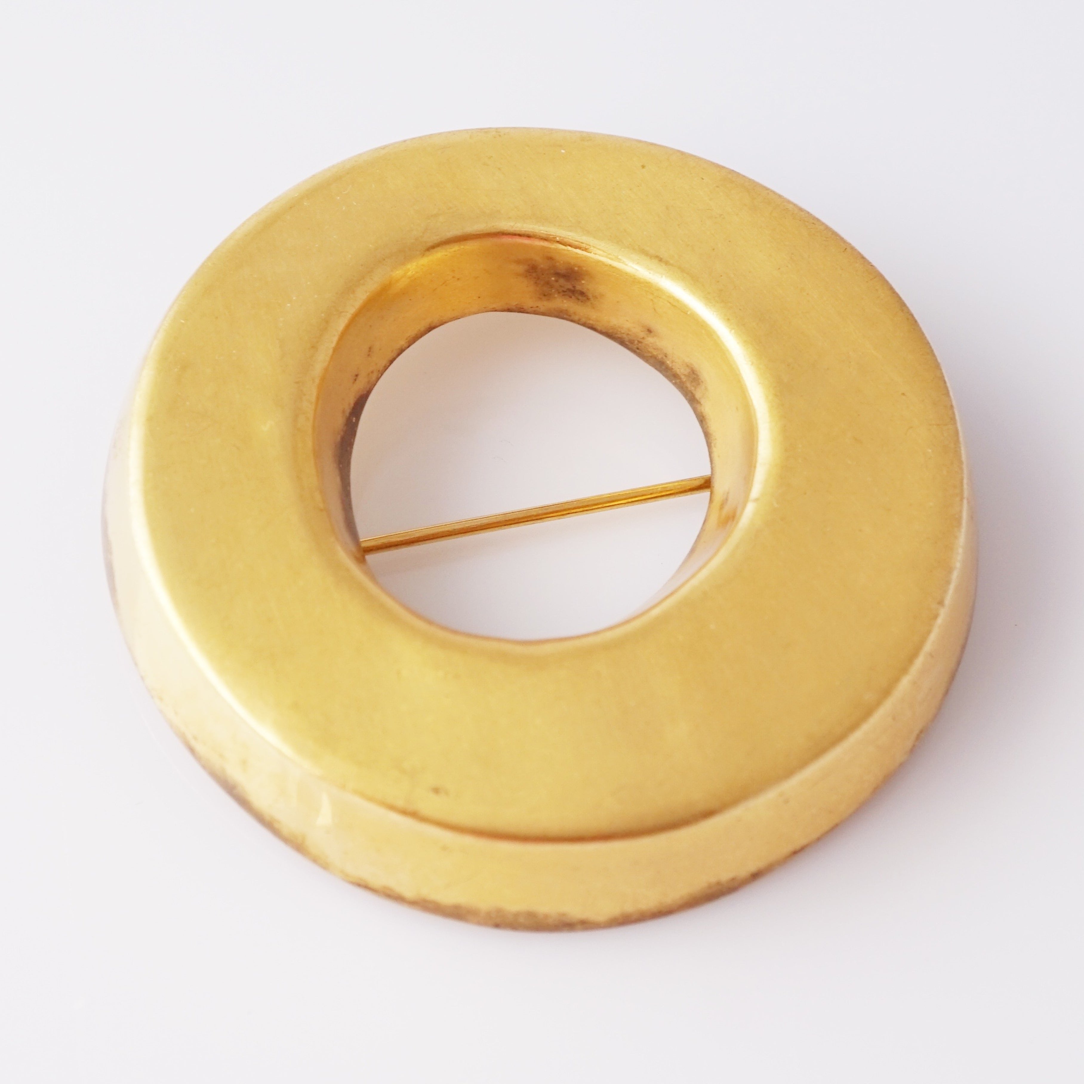 18k Gold Plated Modernist Circle Brooch By Steve Vaubel, 1980s