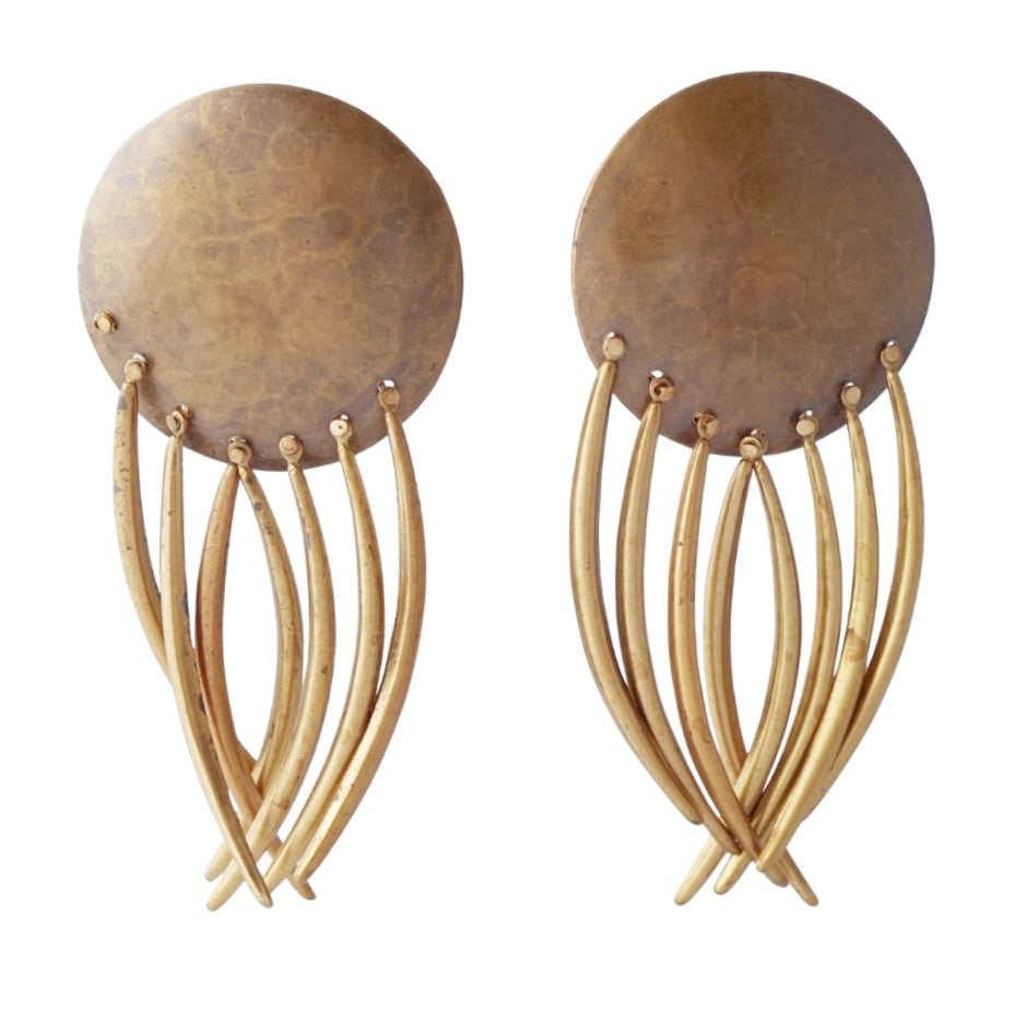 Art Deco Style Gilded Fringe Earrings, 1980s