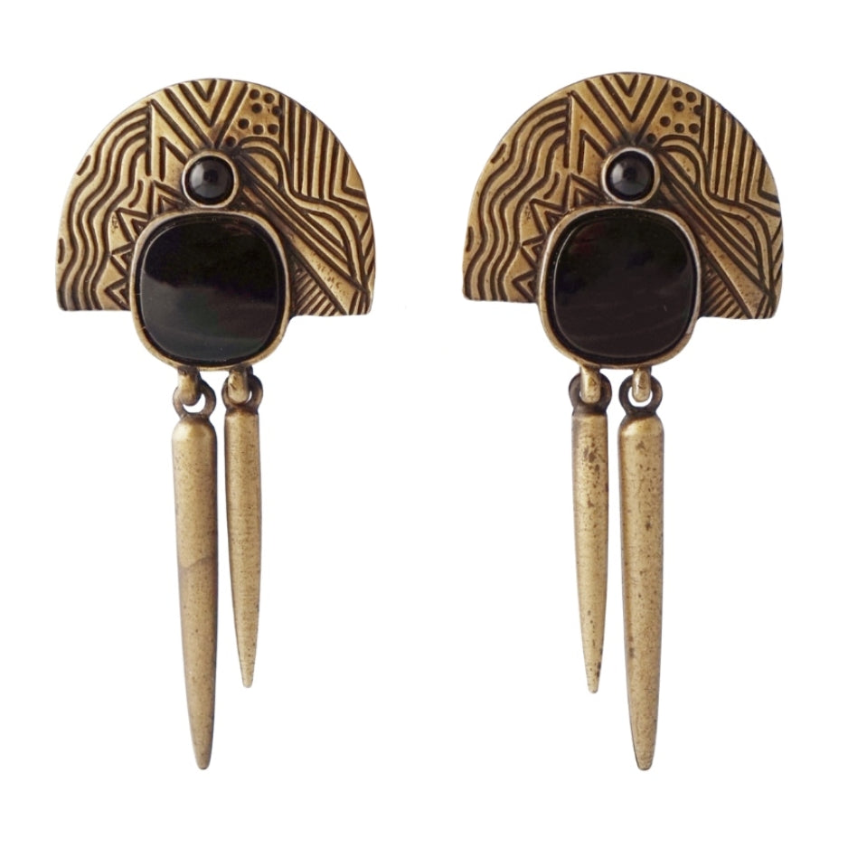 Black and Brass Beaded Dangle Earrings By Chipita, 1980s