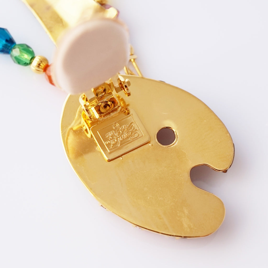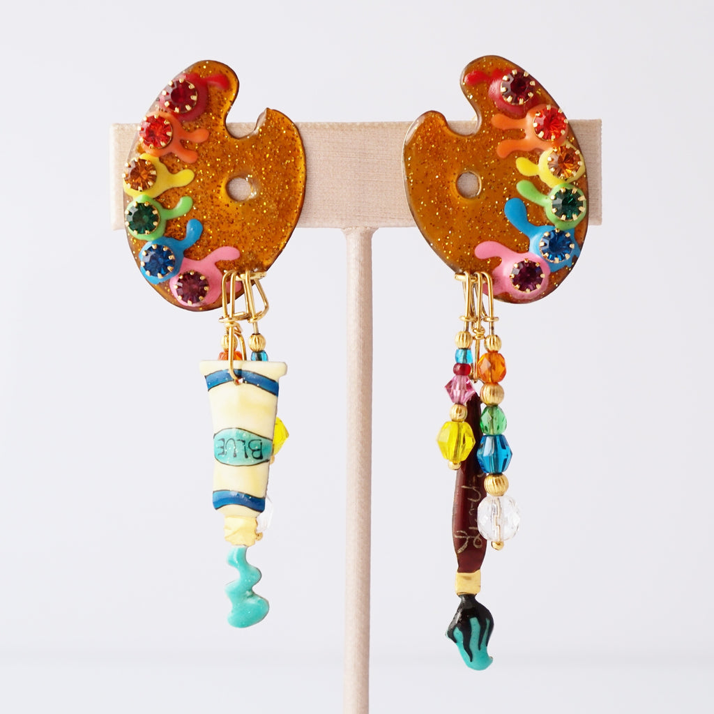 These 1980s statement stunners are pure wearable whimsy, straight from the golden age of maximalism. Each earring is a miniature art studio in motion — glittery enamel palettes dotted with rainbow “paints,” jeweled accents that sparkle like confetti, and dangling charms shaped like a paintbrush and a tube of blue paint. They capture that signature Lunch at the Ritz magic: unapologetically bold, joyfully eccentric, and brimming with artistic spirit. The ultimate earrings for anyone who lives in technicolor and treats every day like a canvas.