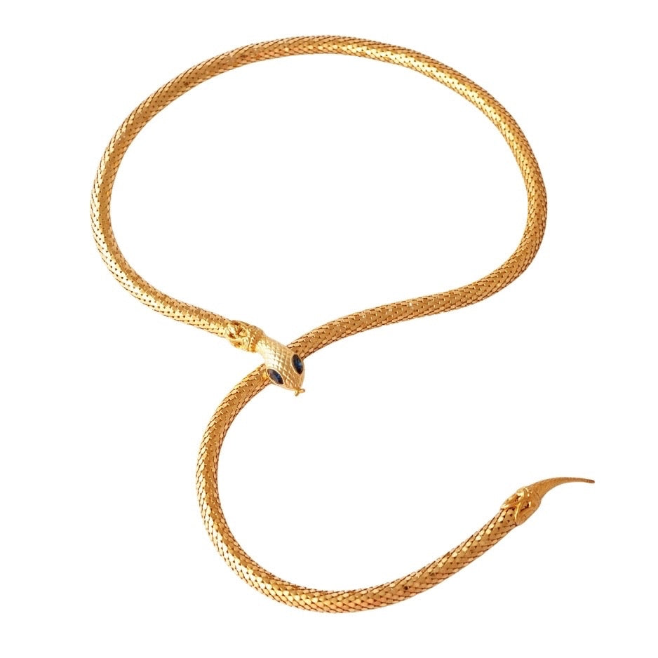 Gold Mesh Snake Belt or Necklace With Sapphire Eyes, 1980s
