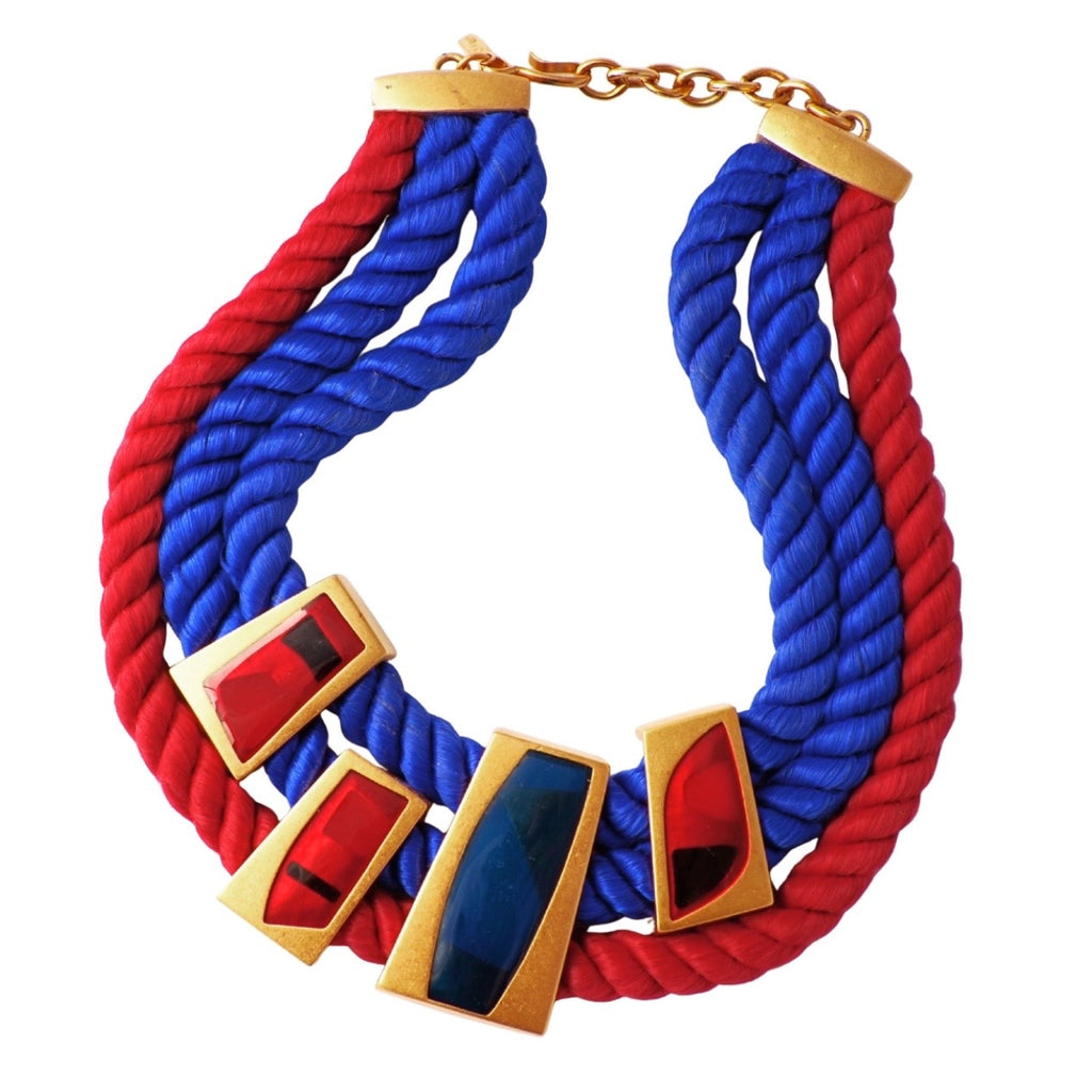 Red and Blue "Directives" Modernist Rope Collar Necklace By Monet, 1980s