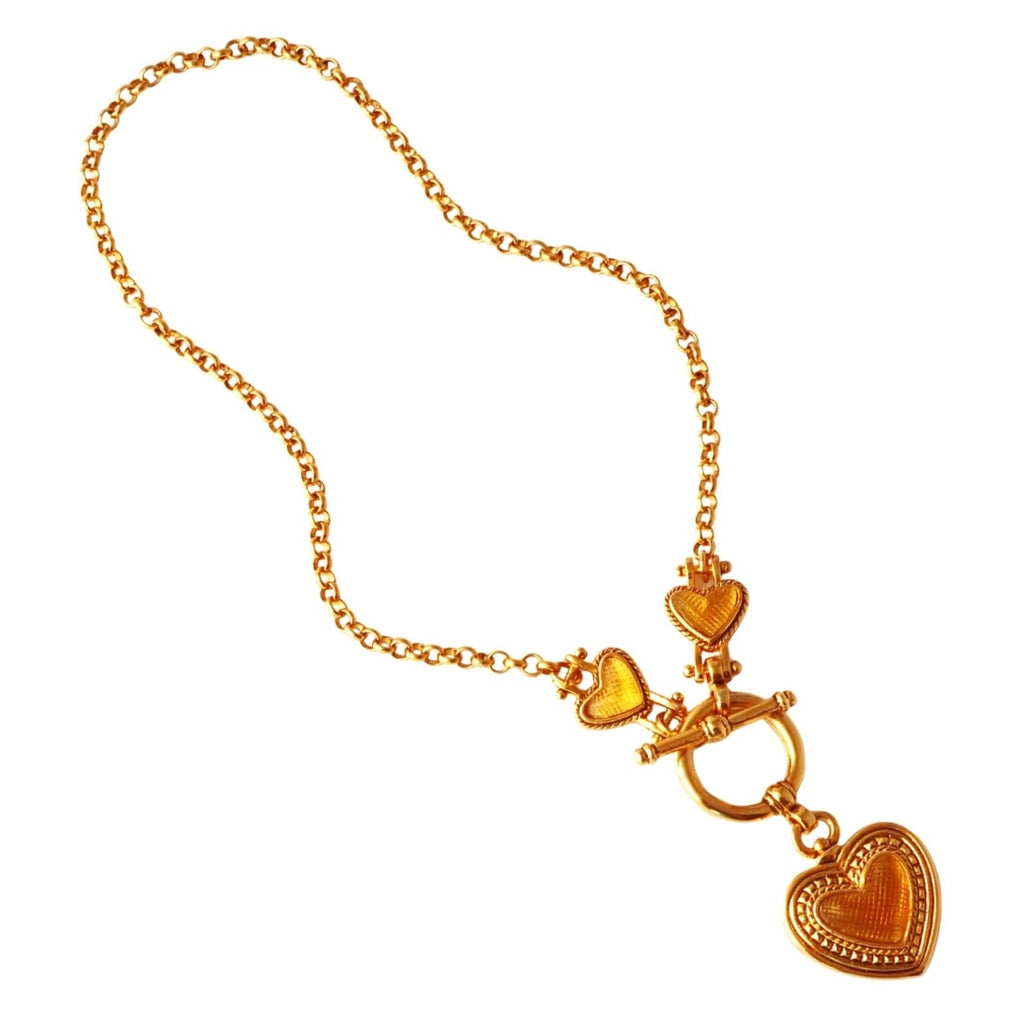 Gold Heart Pendant Toggle Chain Necklace, 1990s