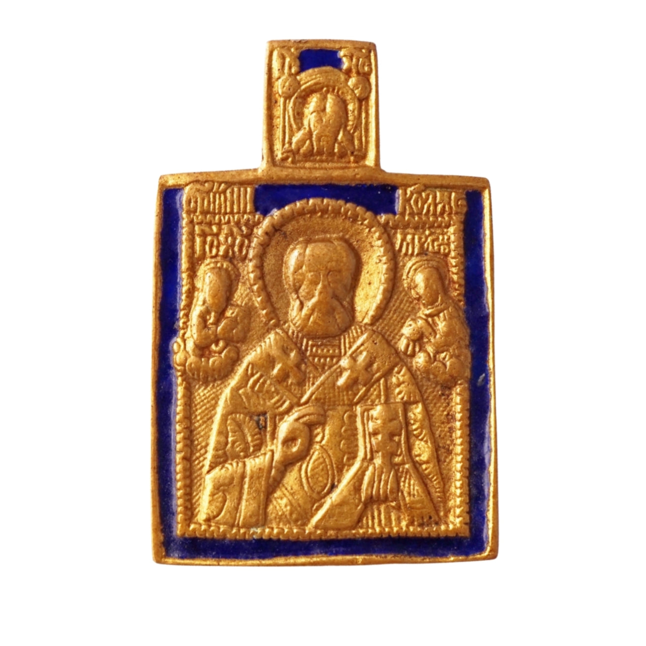 Bronze St. Nicholas Pendant With Blue Enamel Detail By Line Vautrin, 1960s