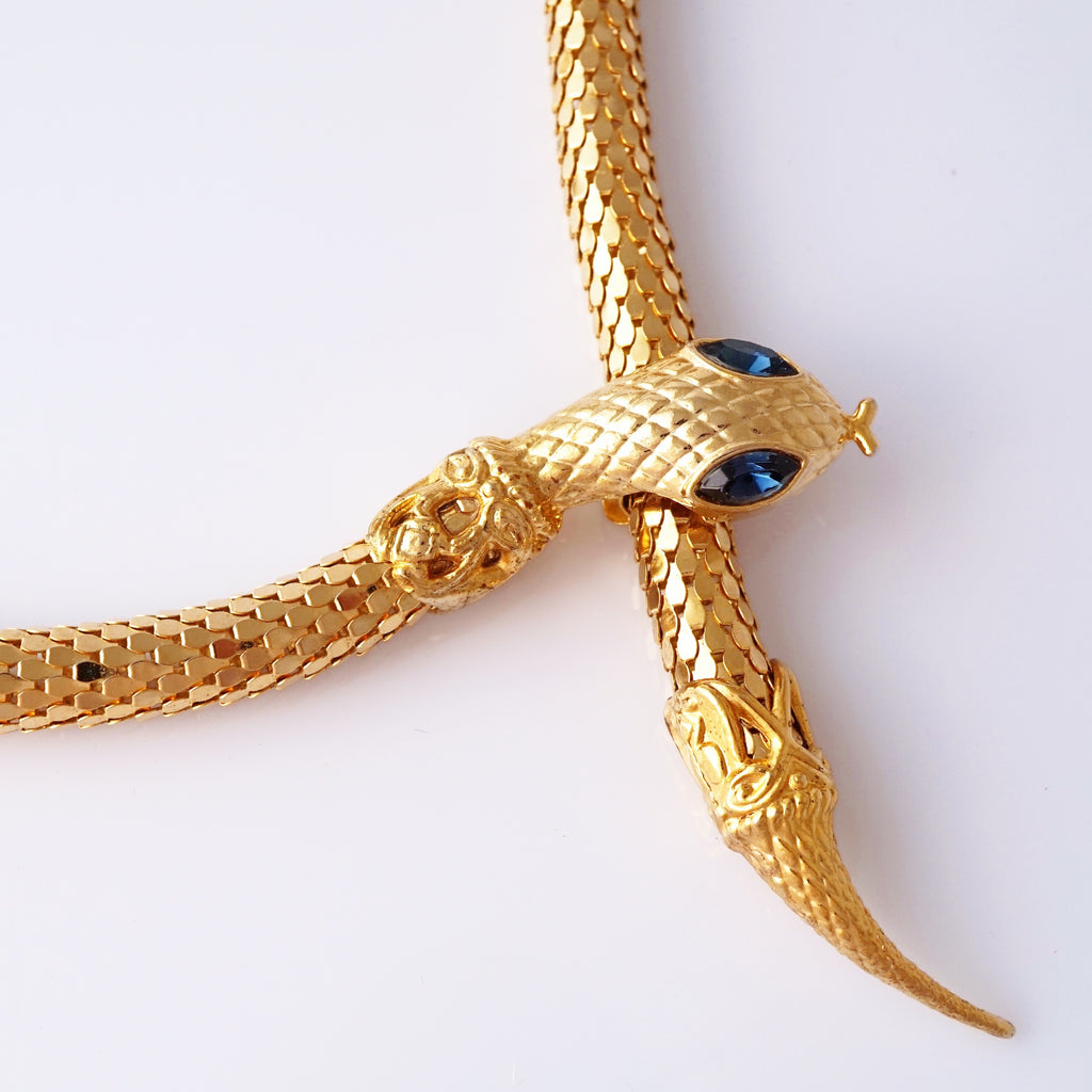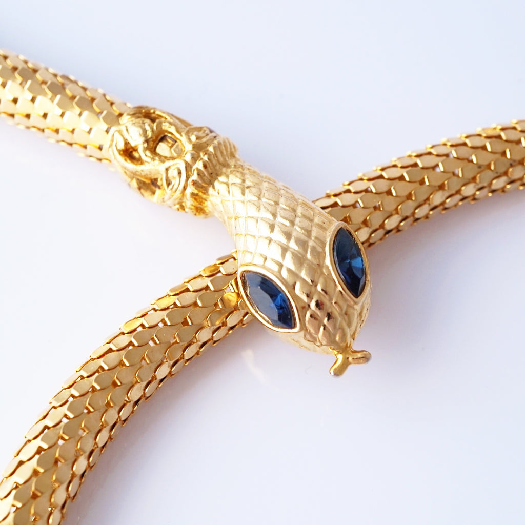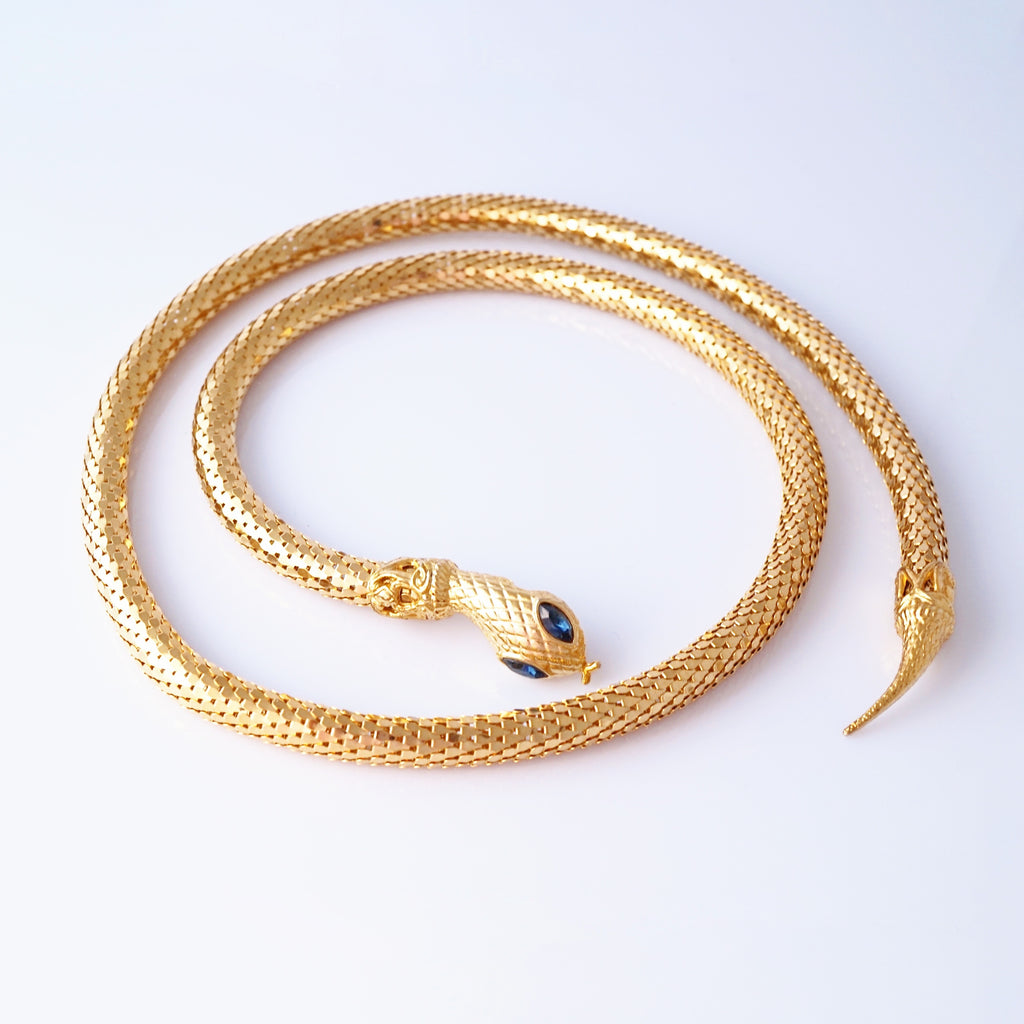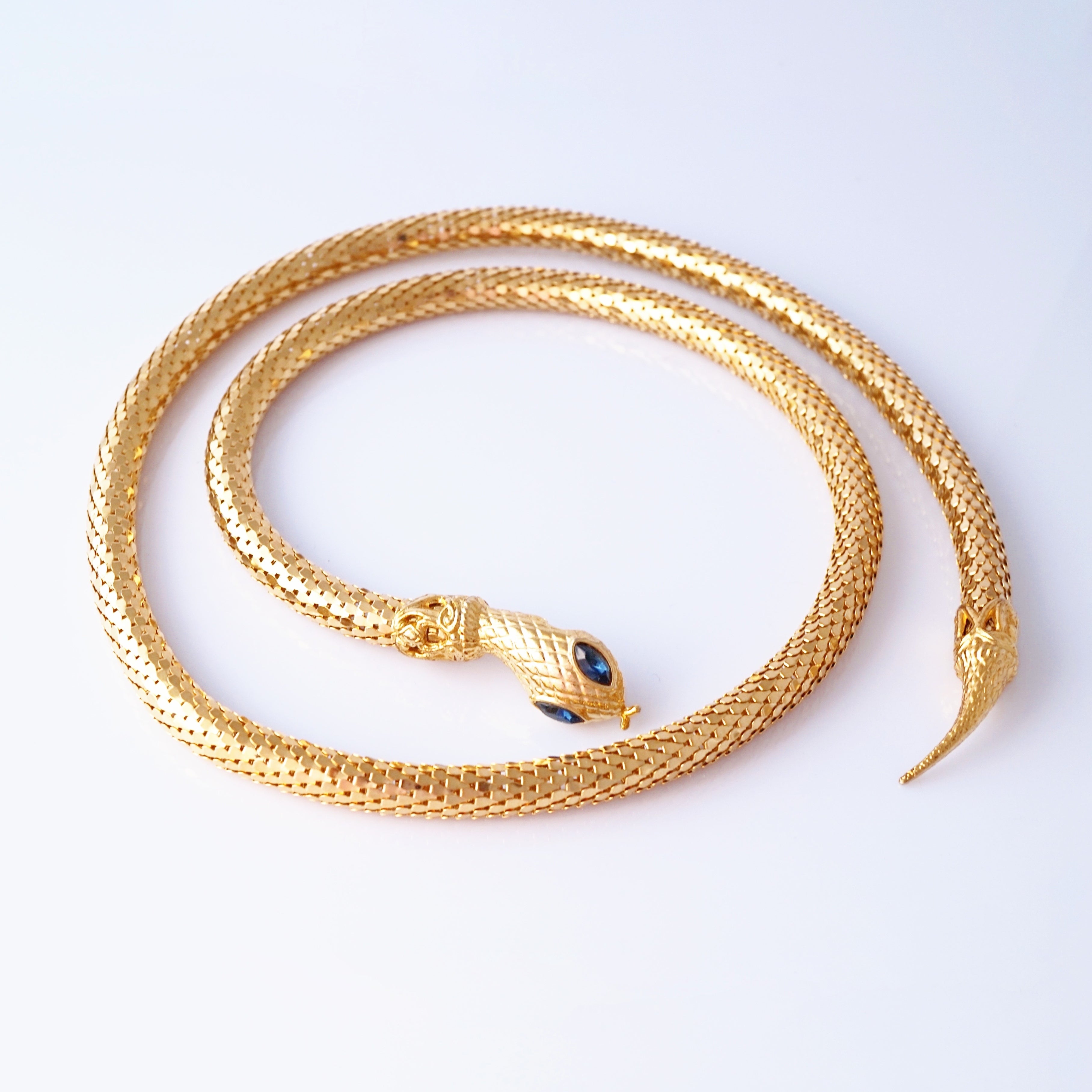 Gold Mesh Snake Belt or Necklace With Sapphire Eyes, 1980s