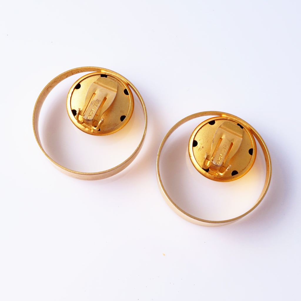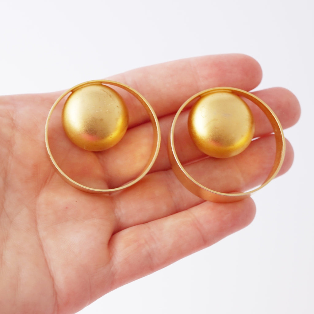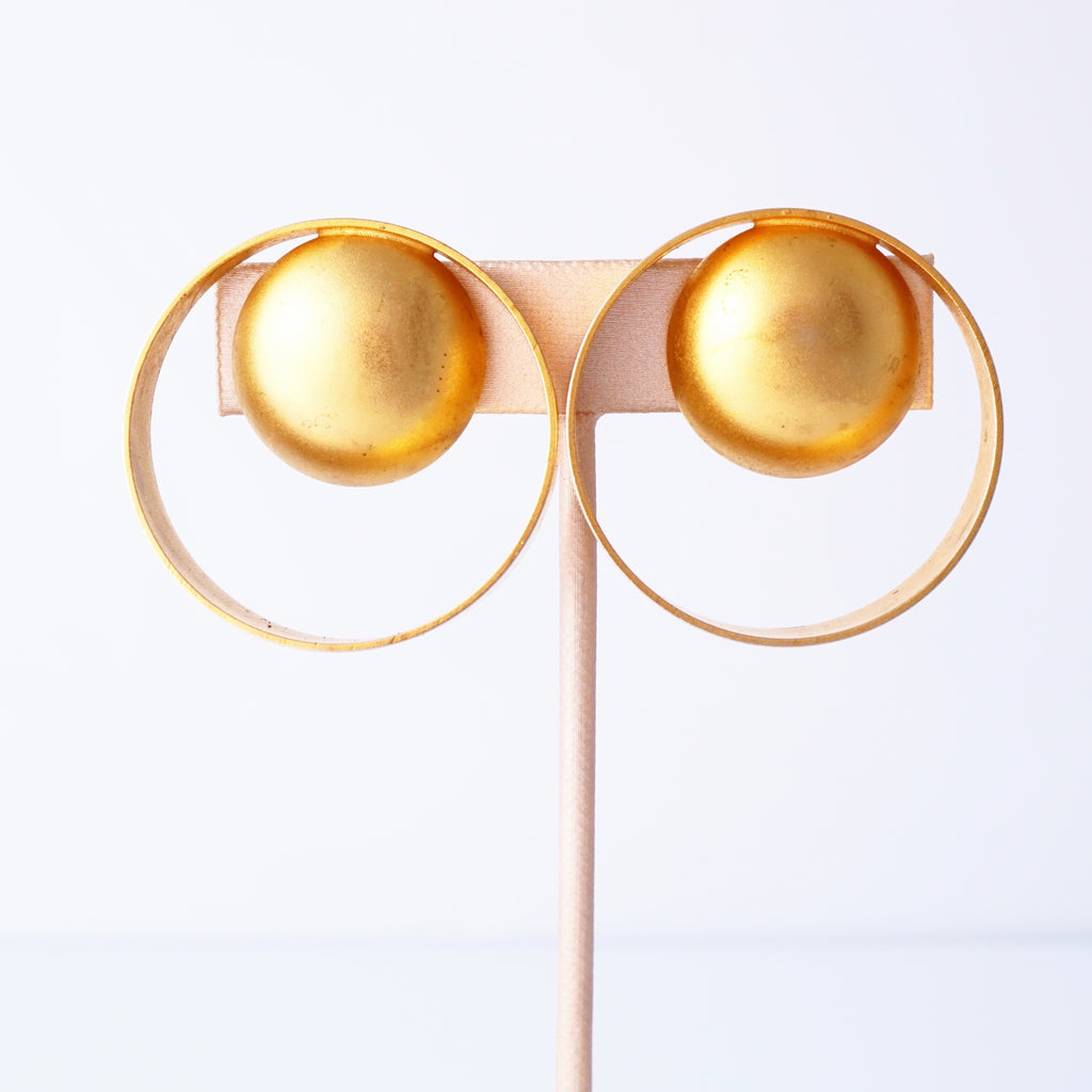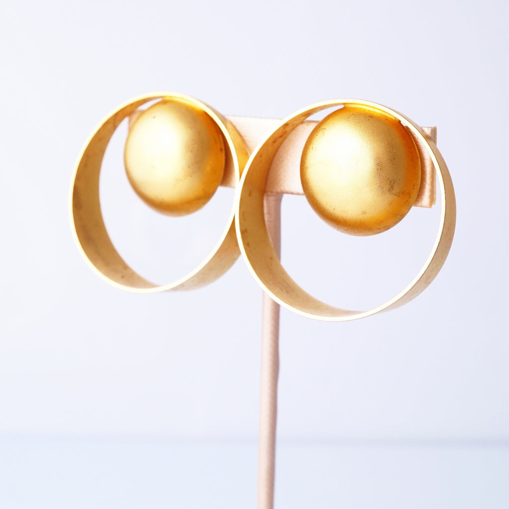 Gold Modernist Geometric Statement Earrings By Marcy Feld, 1980s