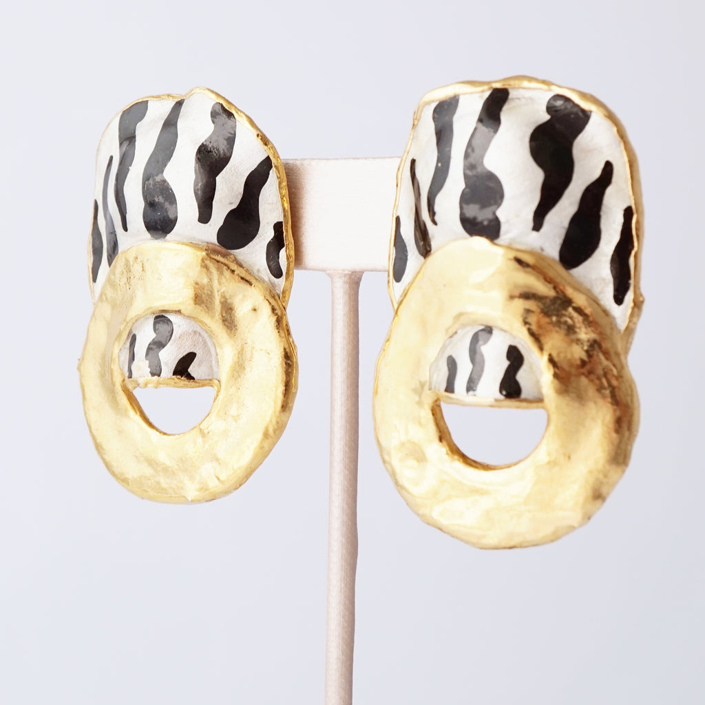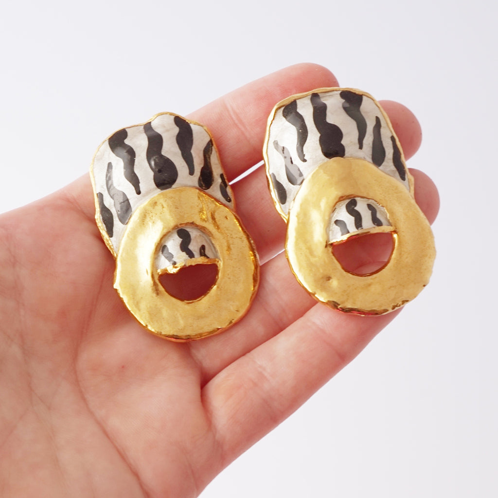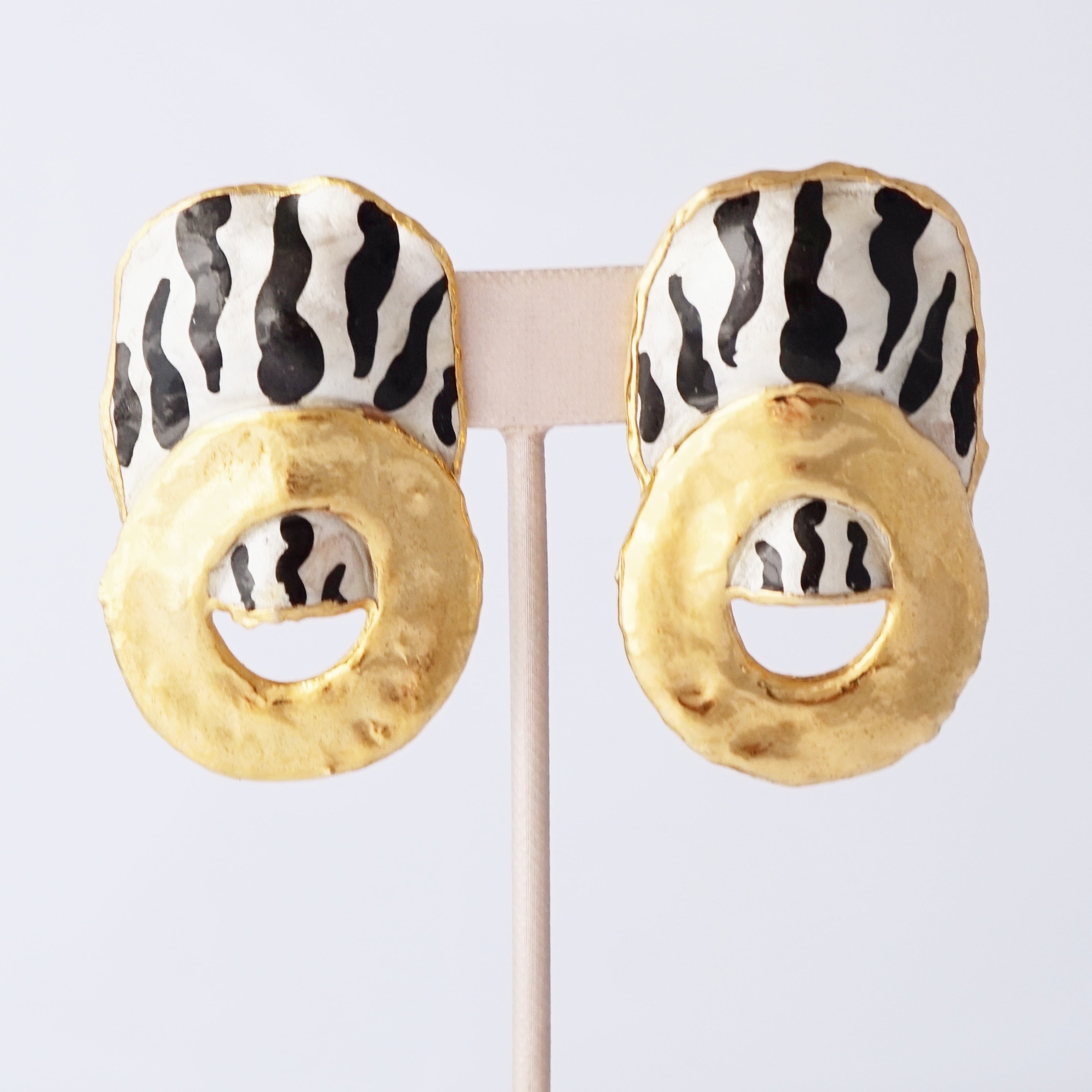 Handmade Gilt & Zebra Statement Earrings By Amy Lacombe, 1980s