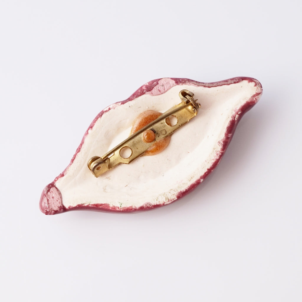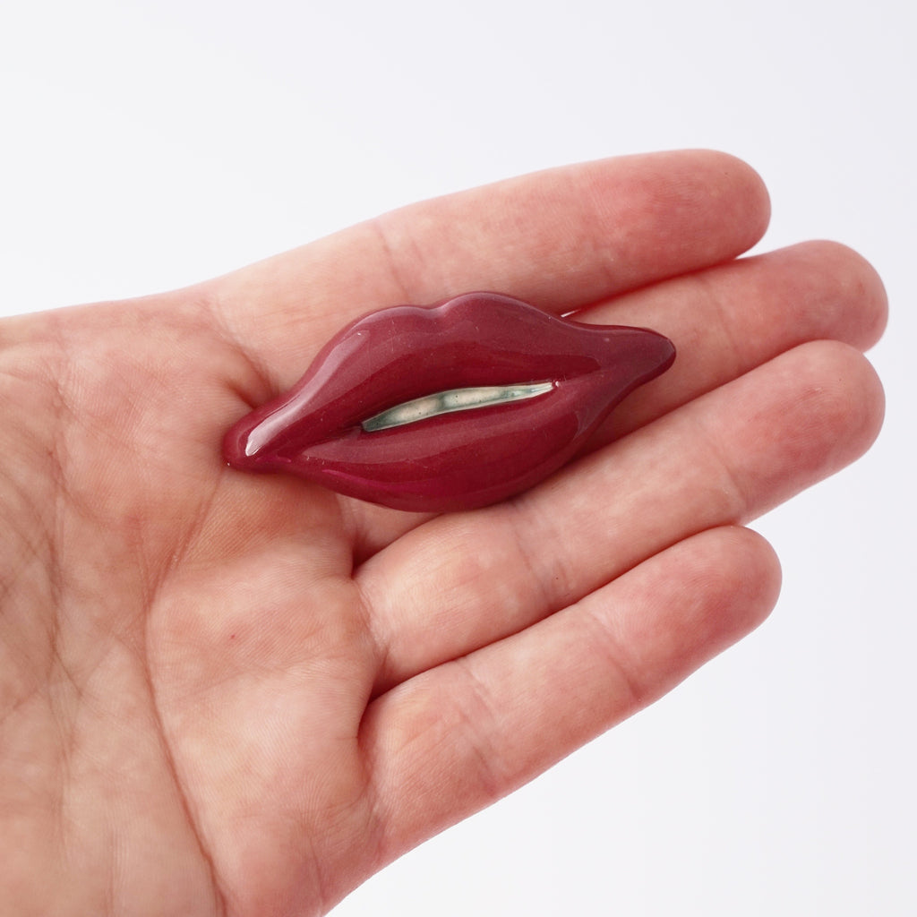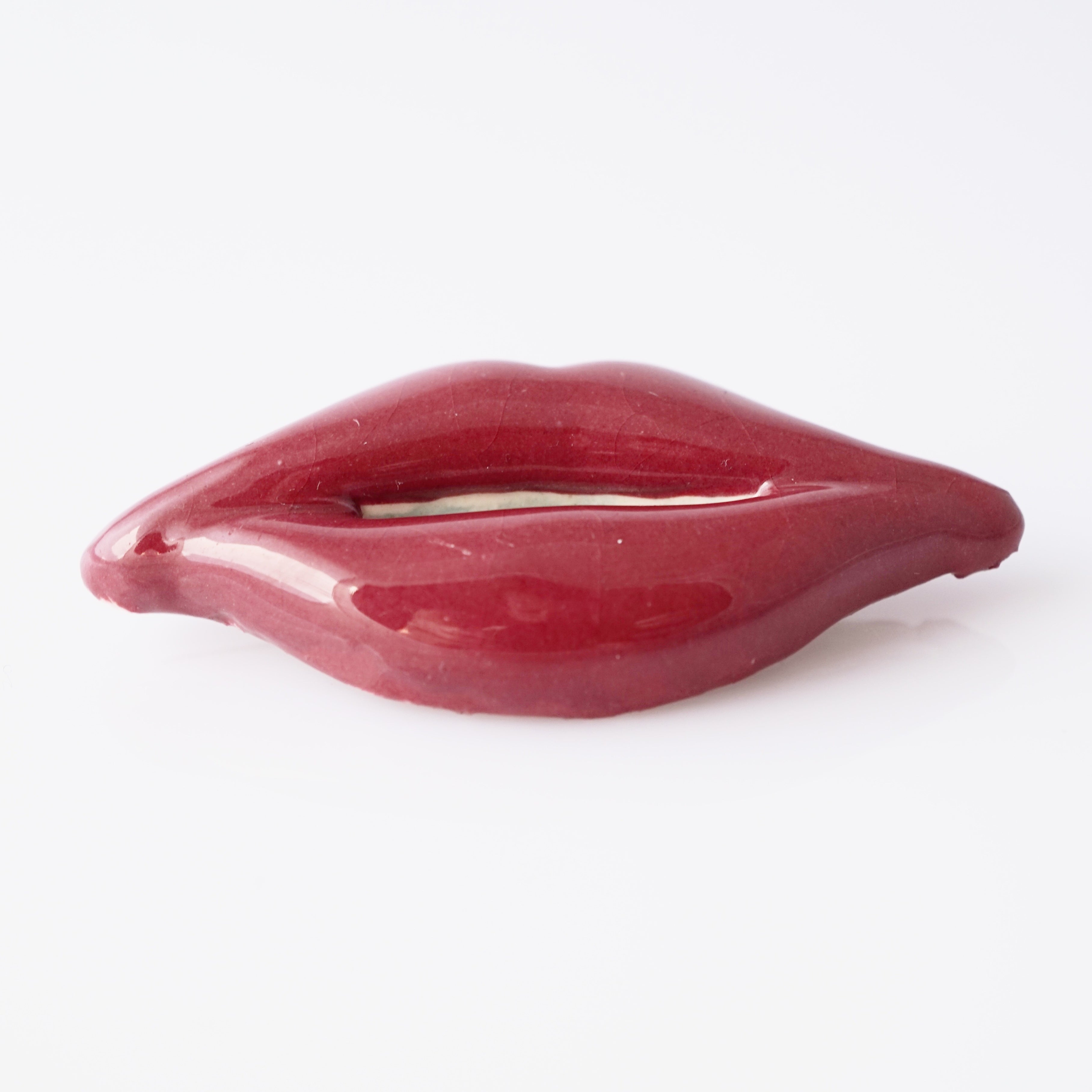 Handmade Ceramic Lips Brooch, 1980s
