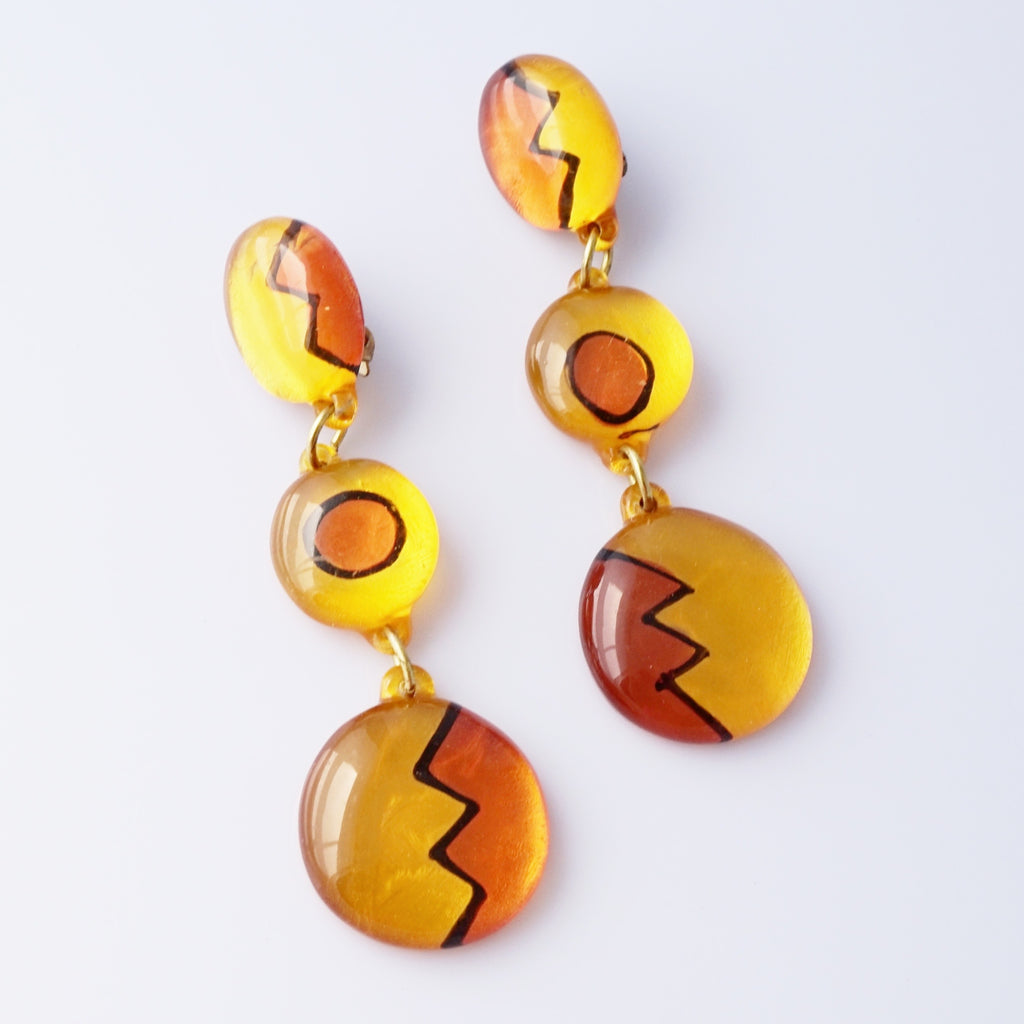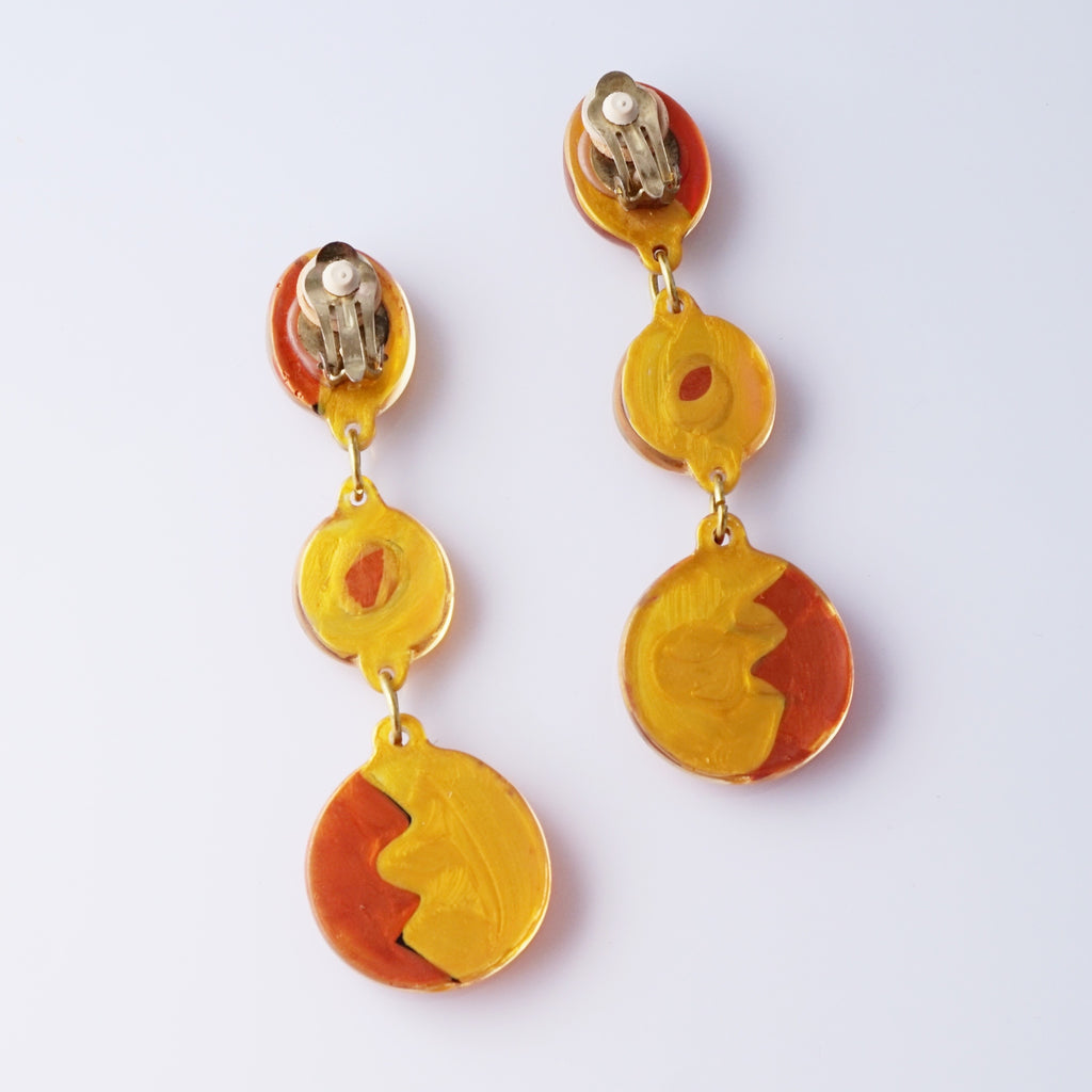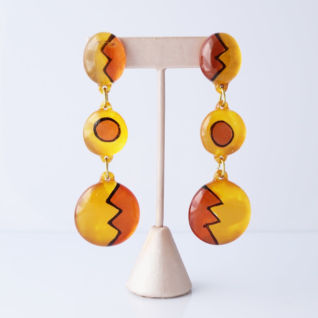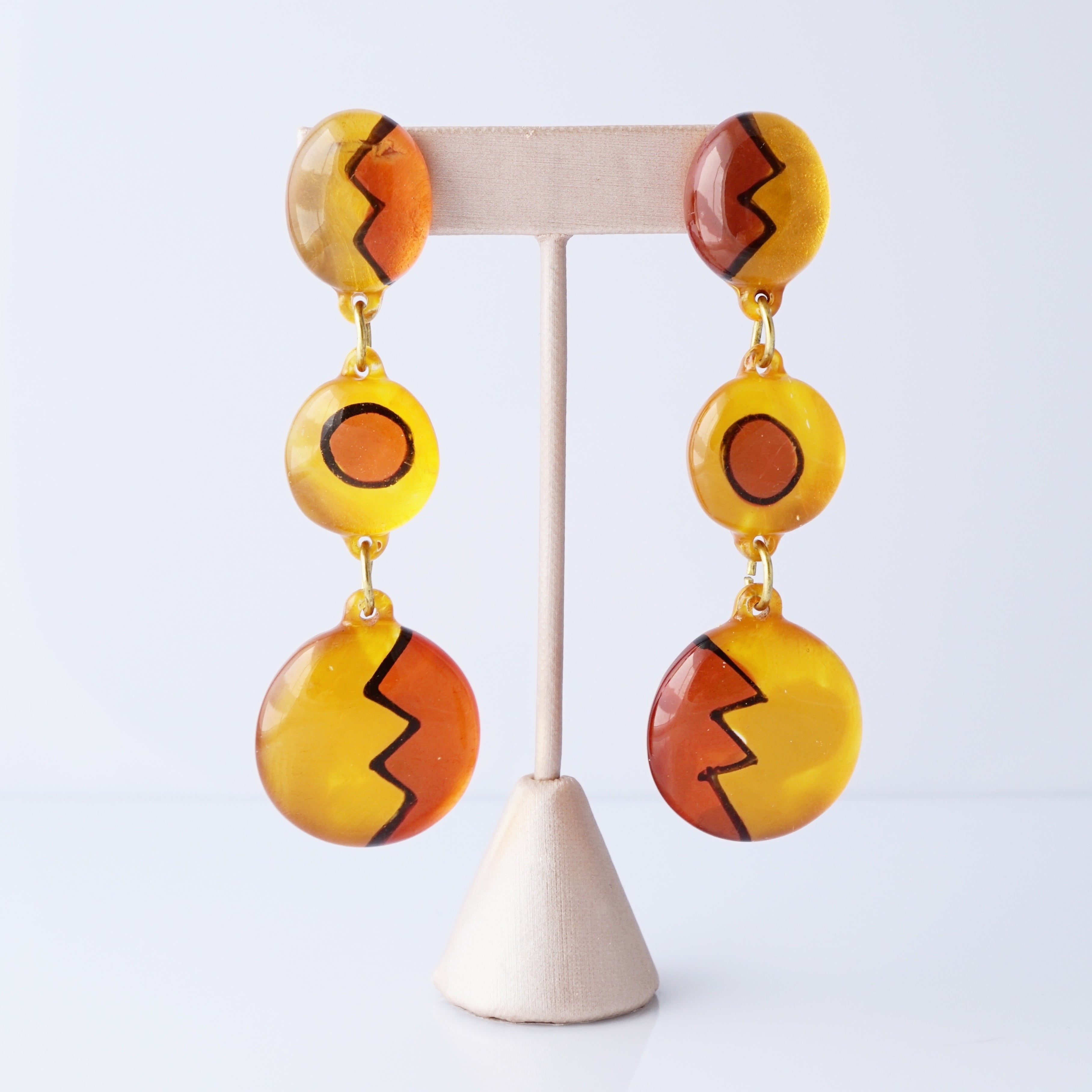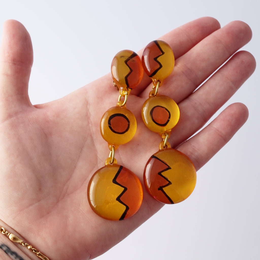 Orange Acrylic Zig Zag Graduated Drop Statement Earrings, 1980s