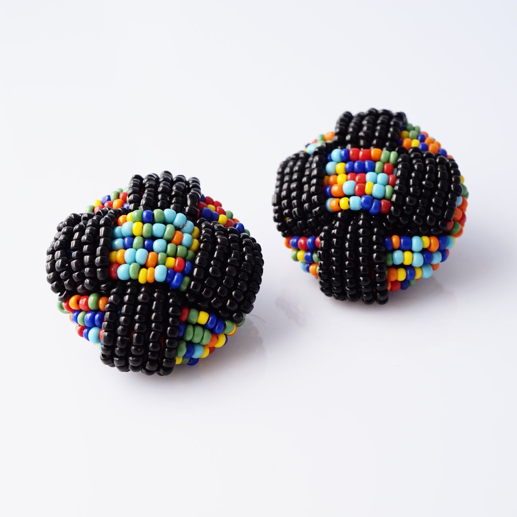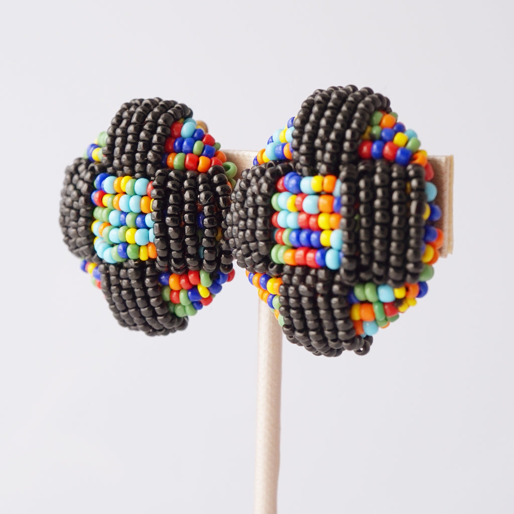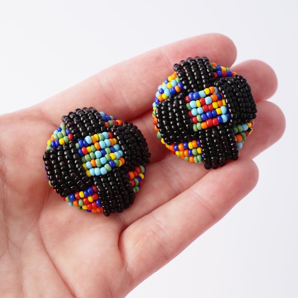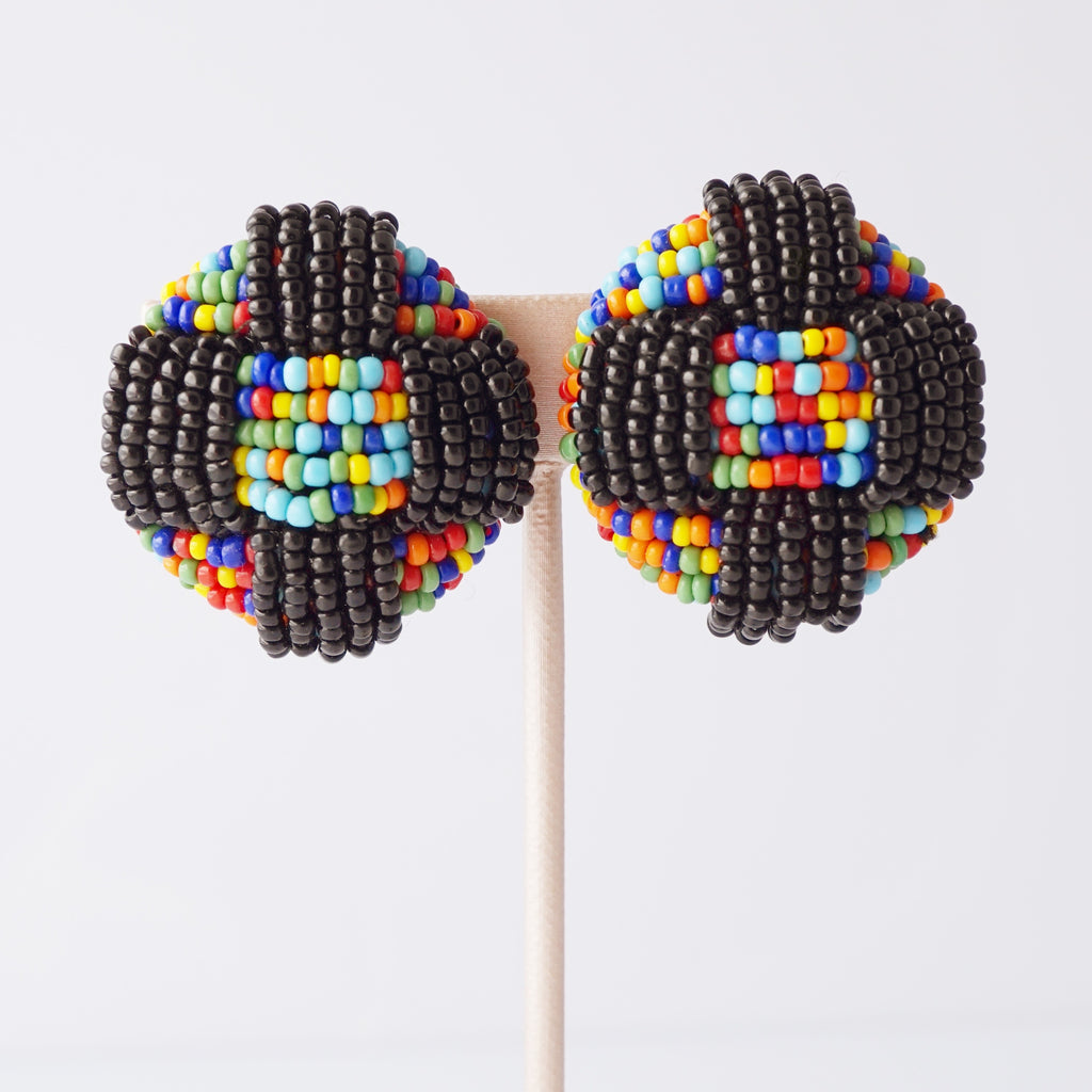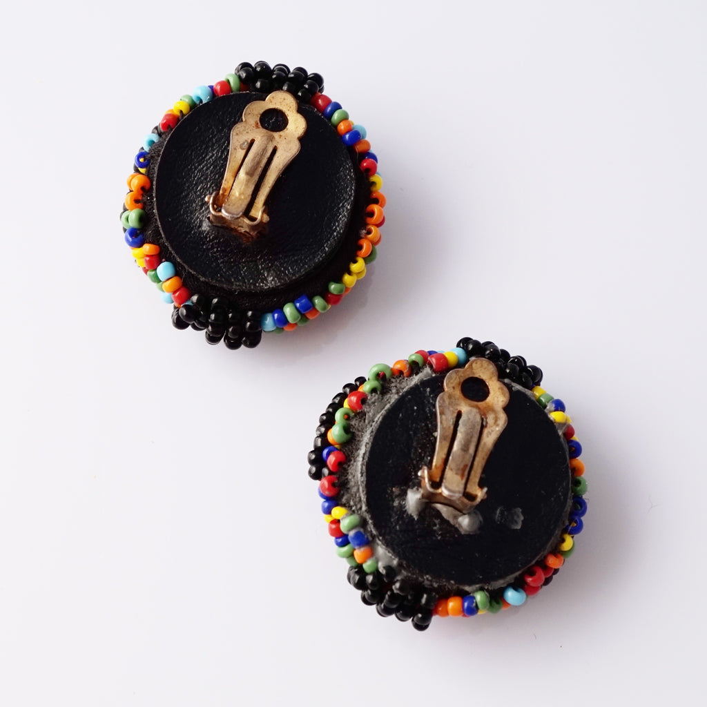 Rainbow Seed Bead Dome Statement Earrings, 1980s